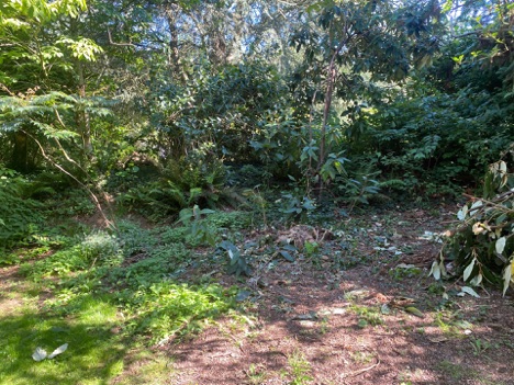Today, more clearing, this time by the steps at the bottom of the Tennis Court. The enormous Osmanthus yunnanensis was encroaching on all around, and there were sycamore and myrtle saplings growing up. Hydrangeas Tokyo Delight, Mme. Mouliére and Rotschwanz looking lovely after deadheading last year’s flower heads.Tokyo Delight is enormous now after about 25 years at least.