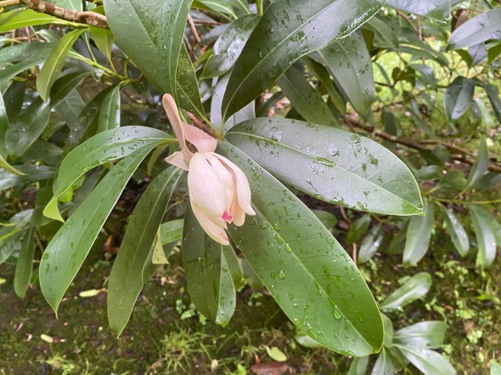Managed to plant large specimen of Crinodendron hookerianum in the clearing behind the Round Temple after I had removed the last of the ivy and a few sycamore seedlings / large sapling from undergrowth. I hope it does OK; it is a shrub I can’t seem to get to grow for long. After lunch it started getting very wet, so Rob had to give up the mowing an hour early but Sue persevered. The dreaded Magnolia conifers var. chingii continues to flower and I posted a photo with rude comment on Facebook in the certain knowledge that it would provoke a reaction, which it did!